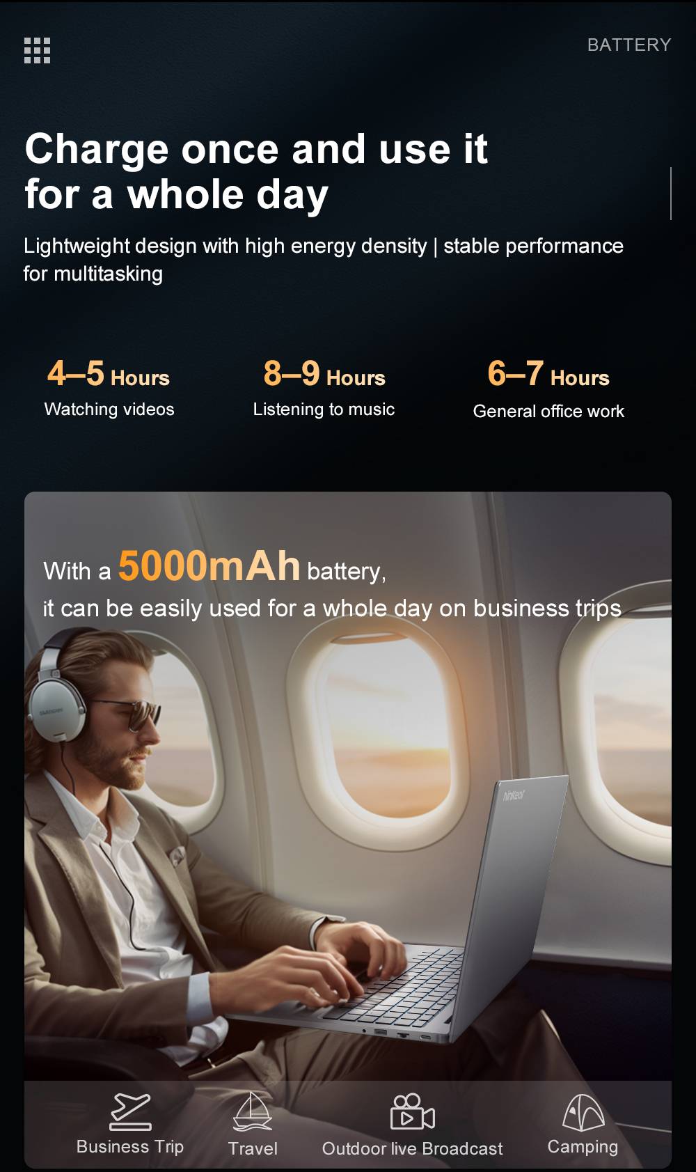 Battery capacity:11.55V/5500mAh, 63.52Wh