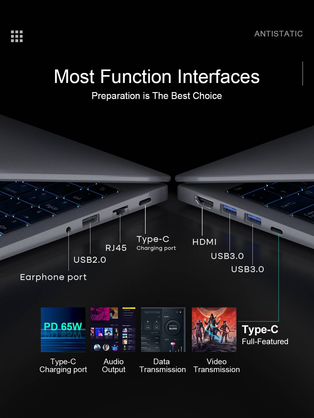 TYPE-C:TYPE-C*2,one full function,another charging only
