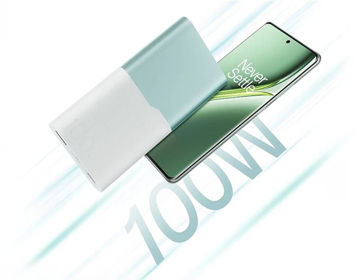 The OnePlus Powerbank offers a capacity of 12000 mAh and supports charging speeds of up to 100 W. The gadget is equipped with a USB C and a USB A port. The powerbank itself can be charged with up to 45W and impresses with its sturdy aluminum housing.