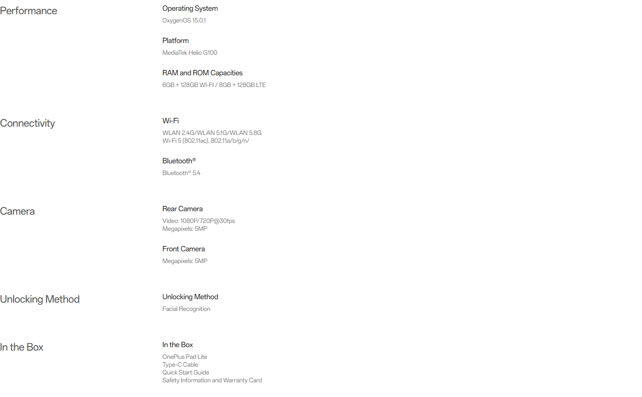 OnePlus Pad Lite 6 GB/ 8GB RAM + 128 GB ROM WIFI Aero Blue
