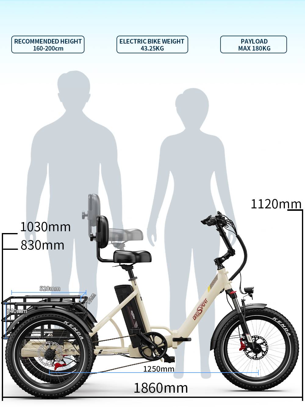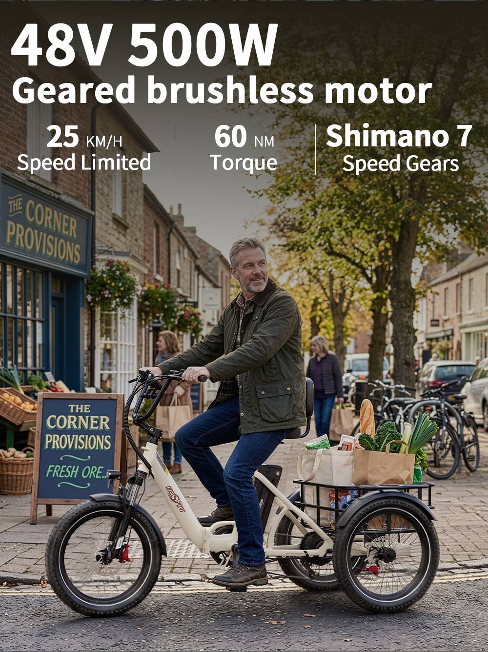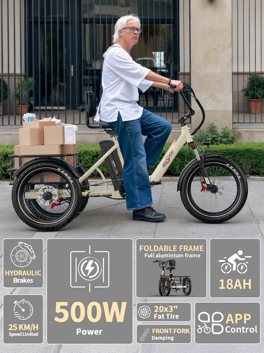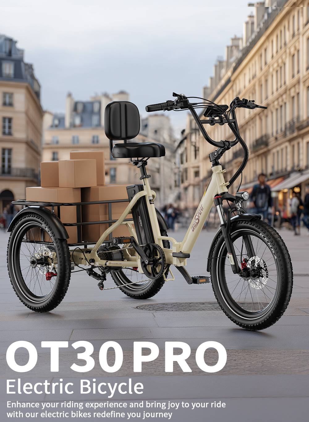 ONESPORT OT30 Pro Electric Tricycle 48V 18AH 500W 20 Inch Tires Adult City Cargo E-Tricycle