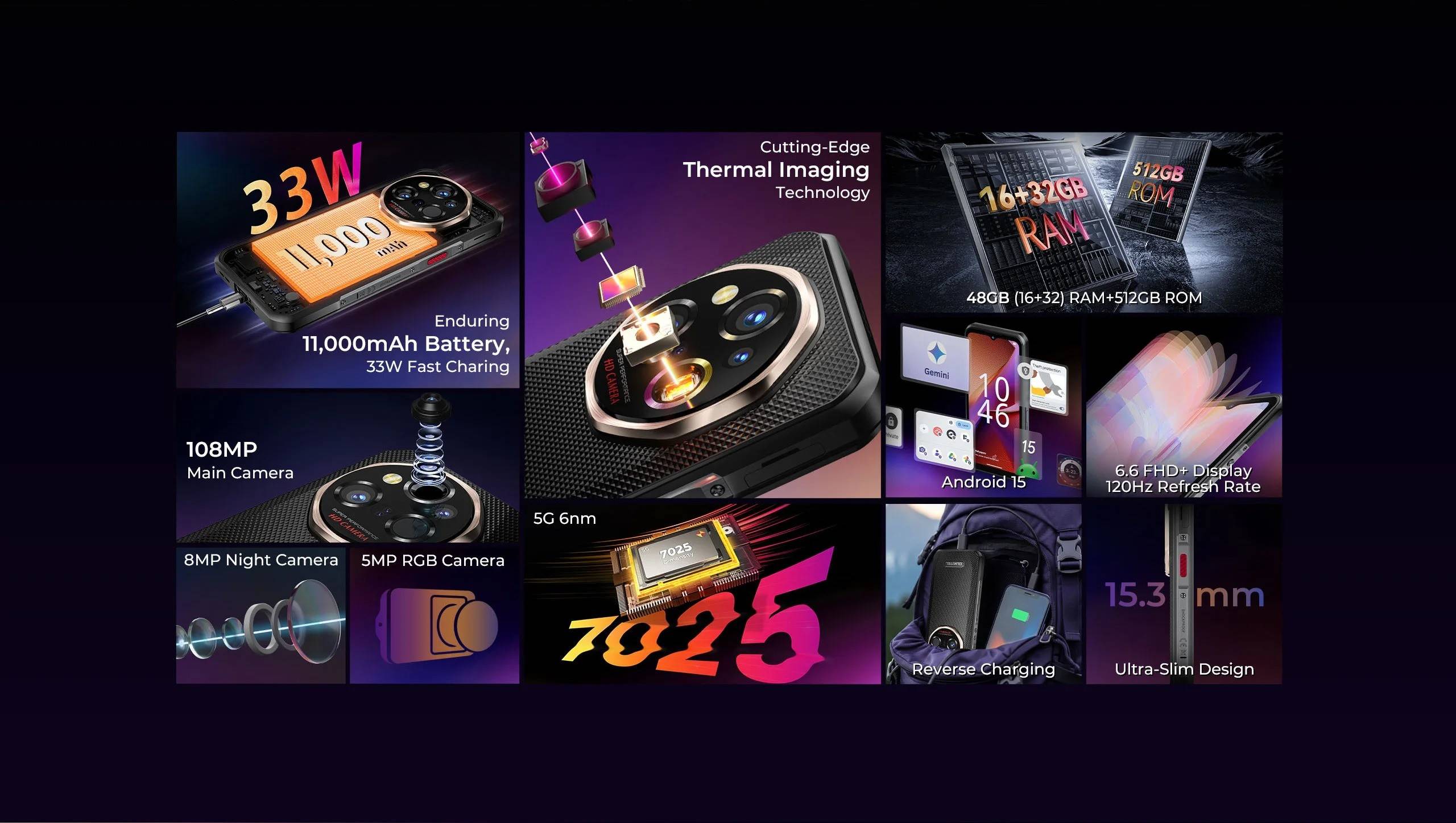 OUKITEL WP55 Ultra Rugged Phone - Thermal Imaging 5G Smartphone, MTK 7025, 48+512GB, 11000mAh, 108MP, 6.6" NFC Android 15