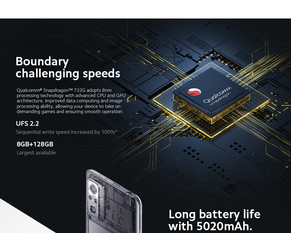 • Prozessor: Qualcomm ®Snapdragon ™732G (Qualcomm ®Adreno ™618 GPU)