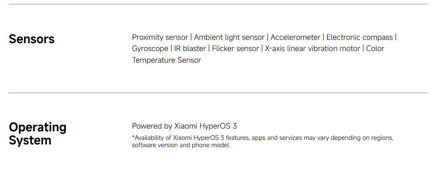 OS-----------Powered by Xiaomi HyperOS 3, Support Multi-Language and Google Play,Ultrasonic in-display fingerprint sensor, AI Face Unlock,IP68 dust and water protection, Dual speakers, Hi-Res & Hi-Res Audio Wireless