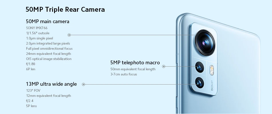 Camera --------- 50MP 5MP 13MP Triple Rear Camera, 32MP Front Camera