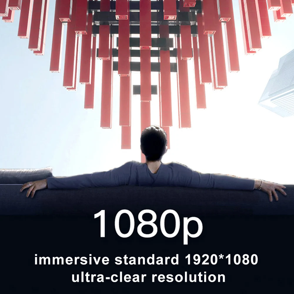 Large Screen - FHD 1920*1080p resolution, 450 ANSI LUMENS, ideal for watching all types of content including movies, videos, games, etc. on a stunning 150” screen (Max.).