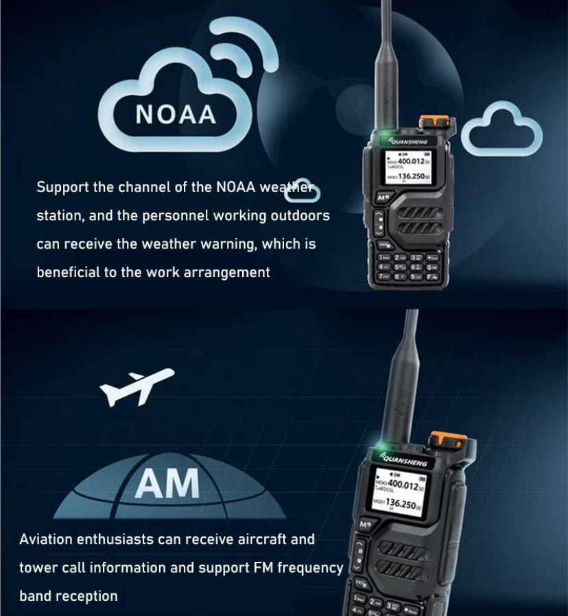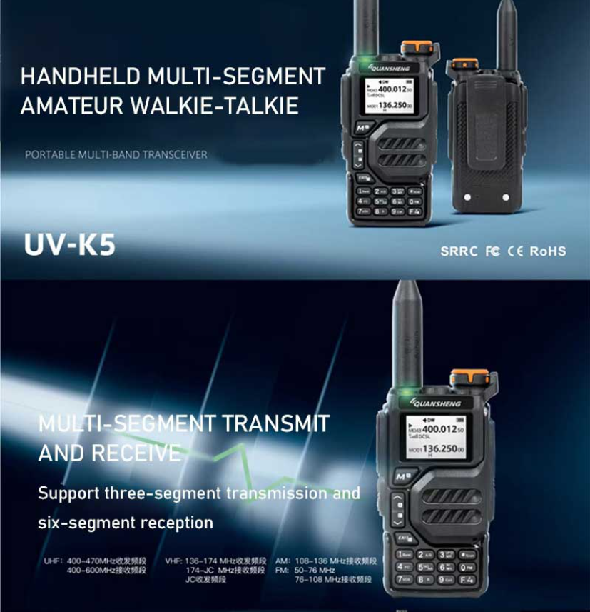 QUANSHENG UV-K5 5W High-power Walkie Talkie 50-600MHz Air Band NOAA DTMF Scrambler LED Flashlight Portable Multi-band Transceive