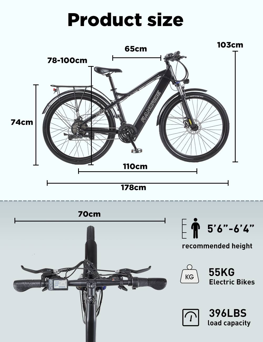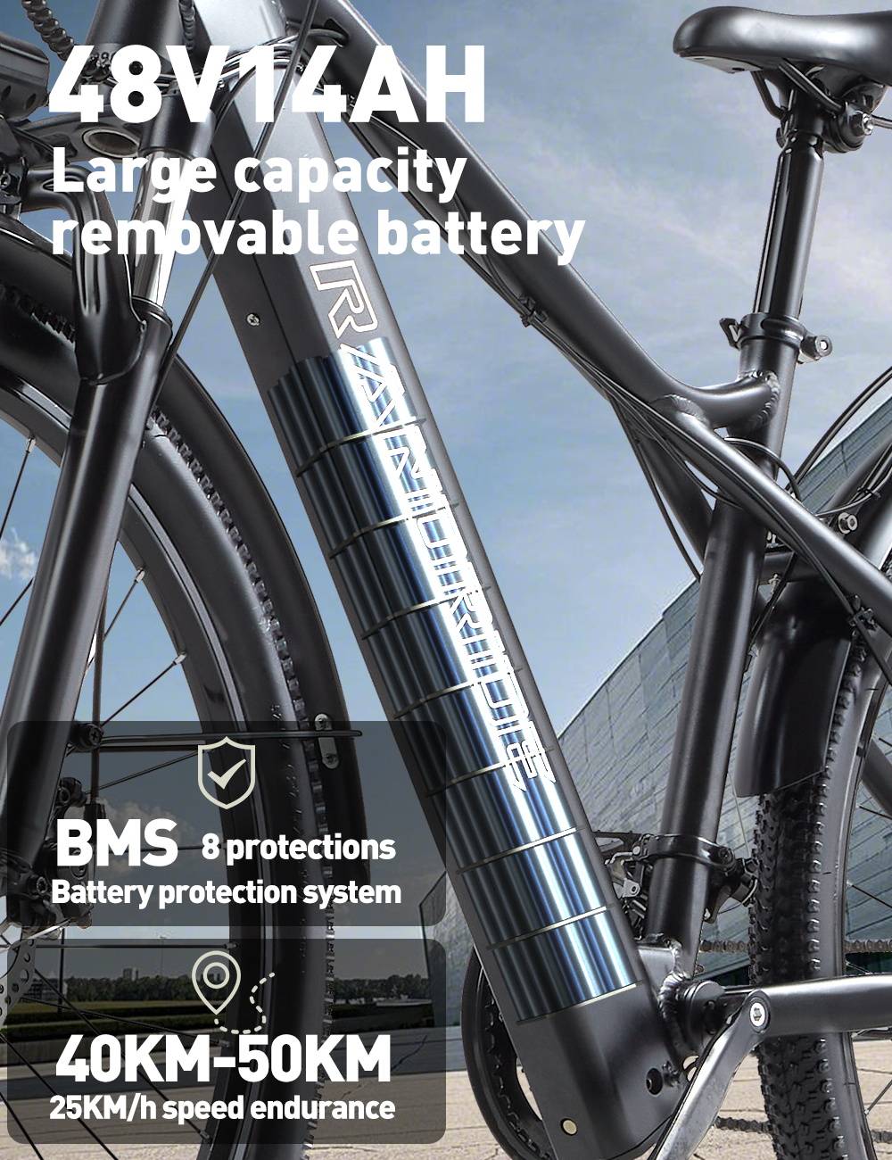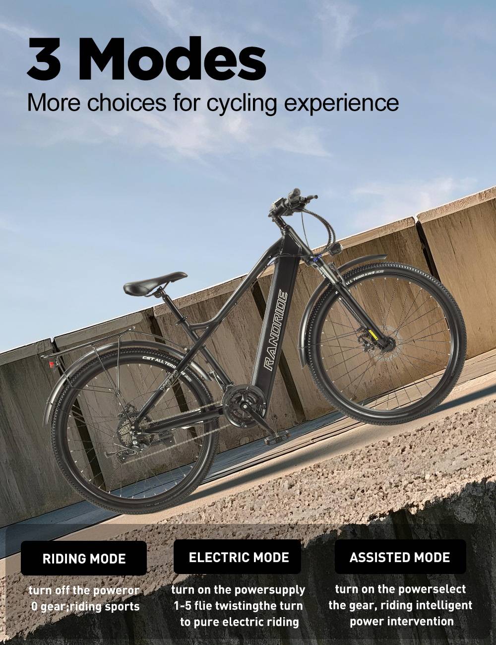 RANDRIDE YG70 Electric Bike 1000W Motor, 48V 14Ah, Recommended Top Speed25km/h, 40-50km Range, 27.5" Tires, Front & Rear Disc Brakes, Spoke Wheel