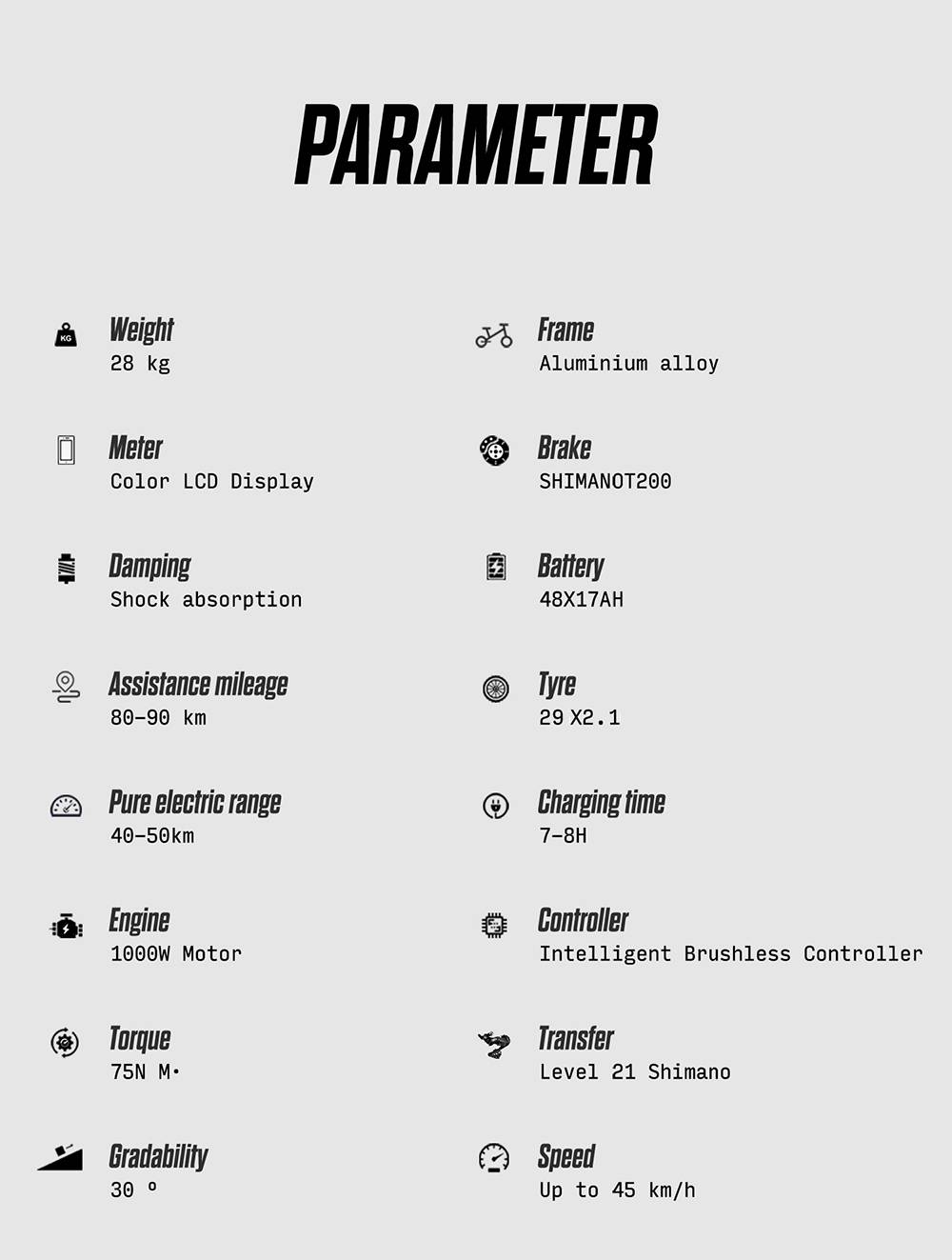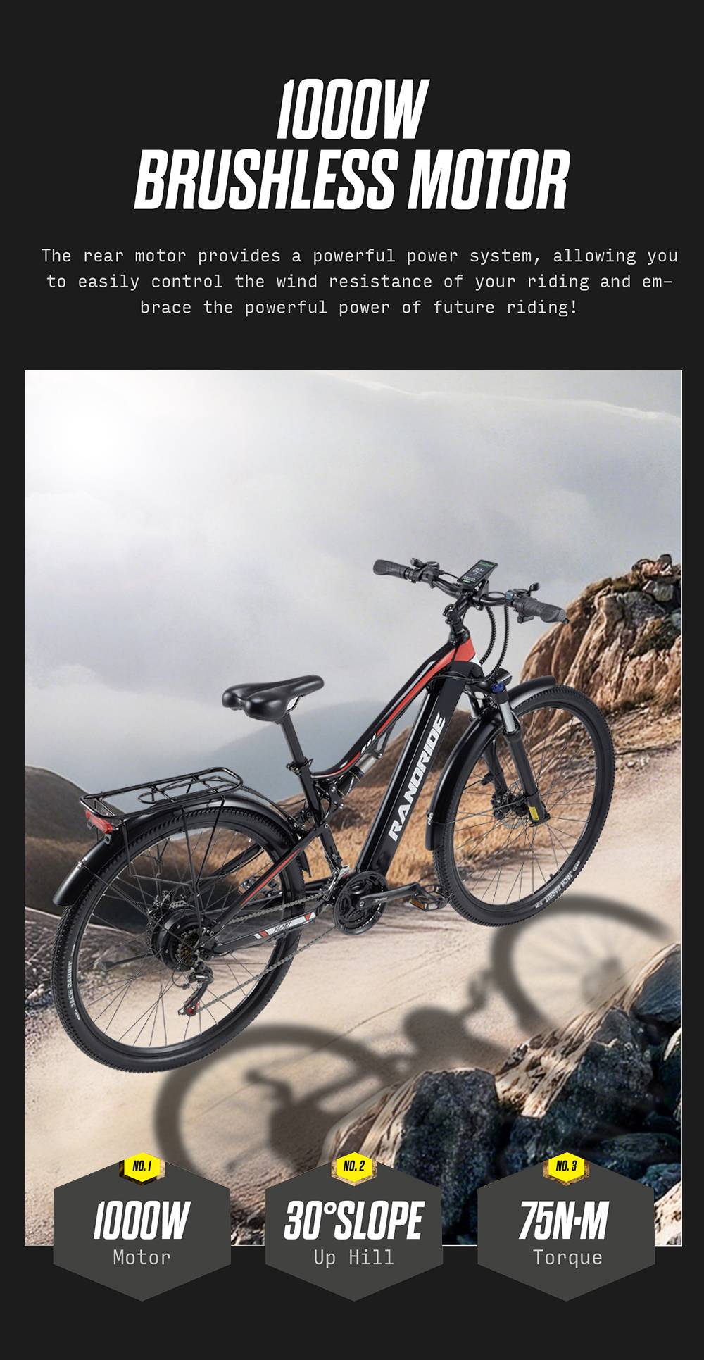 RANDRIDE YG90B-29" Electric Bike Motor 1000W 48V17Ah Battery Hydraulic Brake Electric Bicycle With LCD Display All-Terrain Tires