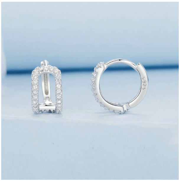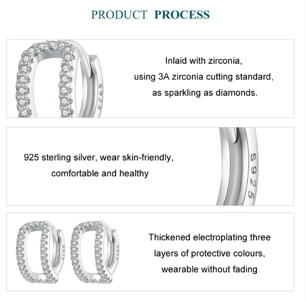 S925 Sterling Silver Plated White Gold Fine Flash Double Layer Earrings