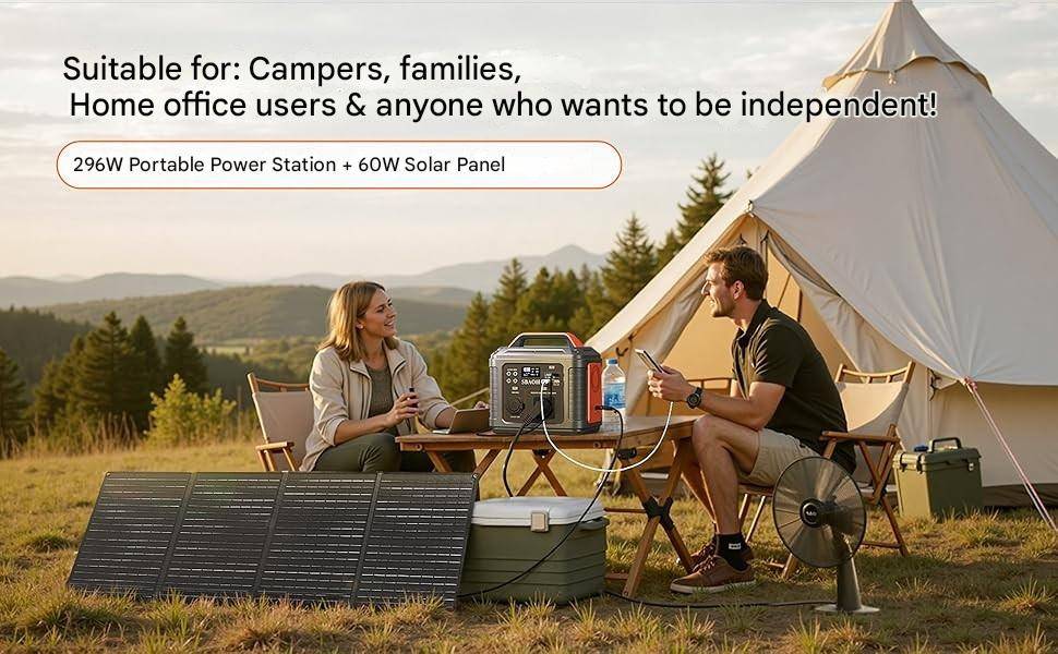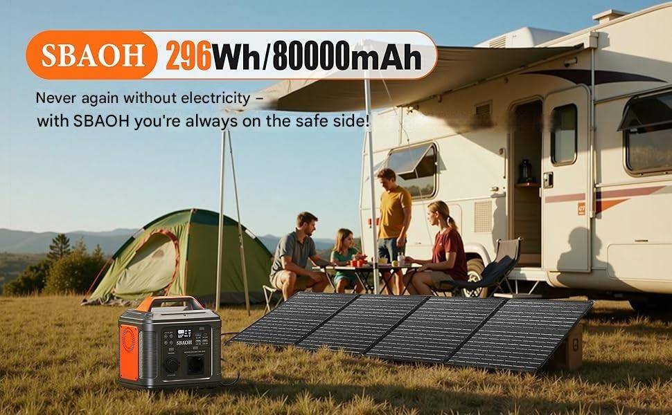 SBAOH P302 Portable Power Station with 60 W Solar Panel, 296 Wh Solar Generator with 300 W Output, Mobile Power Supply for Garden, Travel, Camping, Motorhome, Emergency