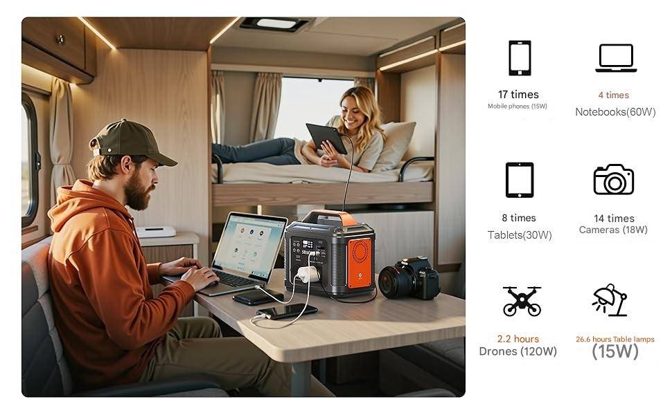 Excellent solar generator and solar panel kit: Combines a portable 296Wh power station and a 60W solar panel in one. The kit can charge important devices that absorb solar energy and store it for any time use. This is the ideal product for short family trips.
