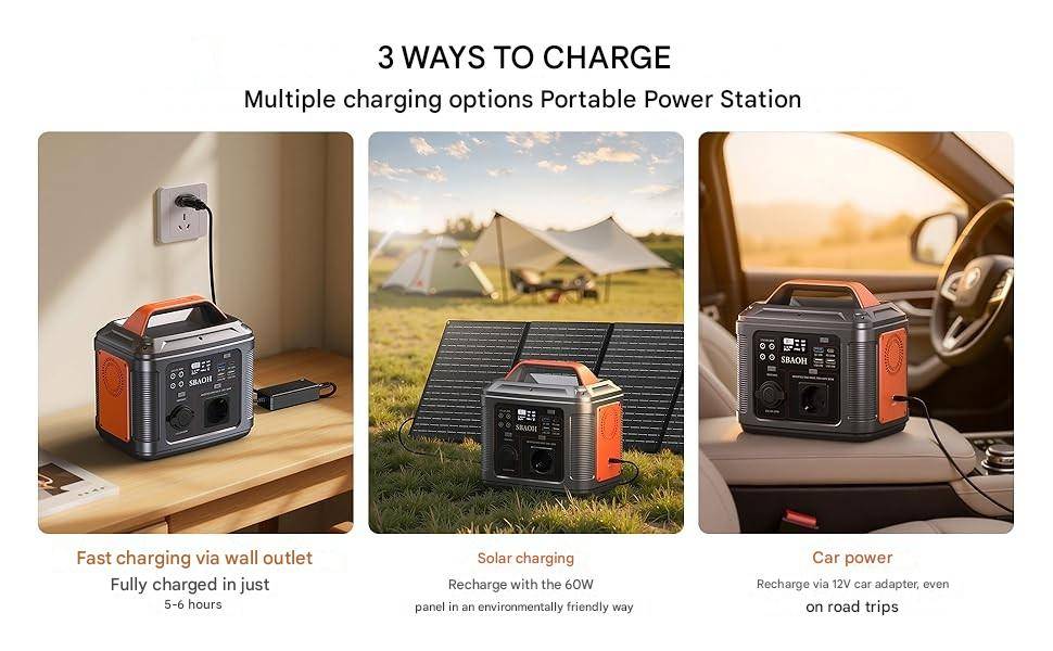 Multiple charging methods. 1. Full charging with INPUT 15V/4A adapter for approx. 6 hours. 2. It can be charged by connecting to the car's 12V socket (including car charger). 3. It can be charged with solar panels (have solar panel, maximum 13 V ~ 25 V / 3.0 A).