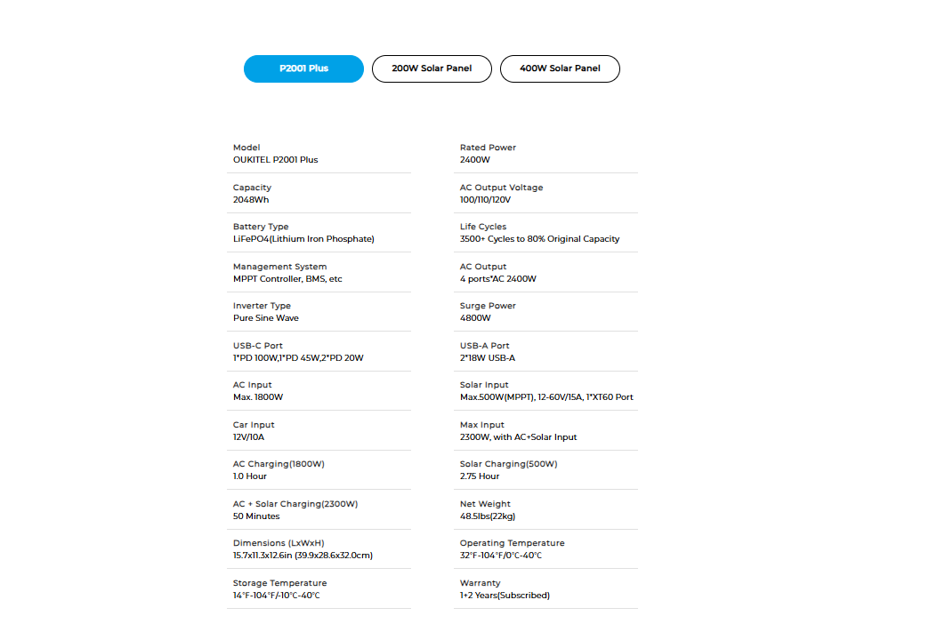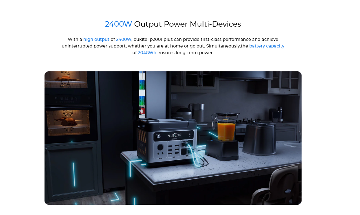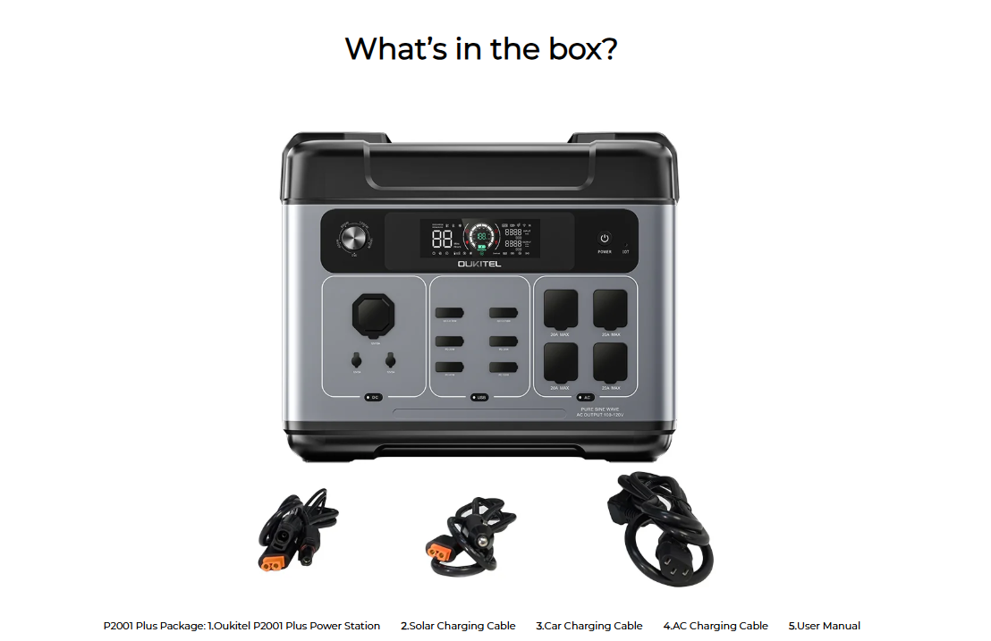 OUKITEL P2001 Plus Portable Power Station, 2400W AC Output, 2048Wh LiFePO4 Battery, 13 Outlets, 80% Charge in 1Hr, Smart APP Control, IP54 Dust-Proof & Splash-Proof