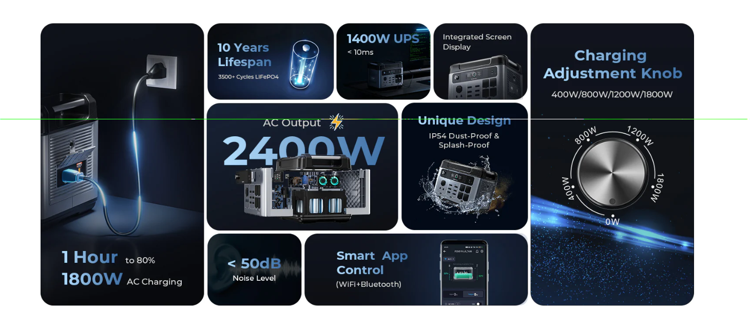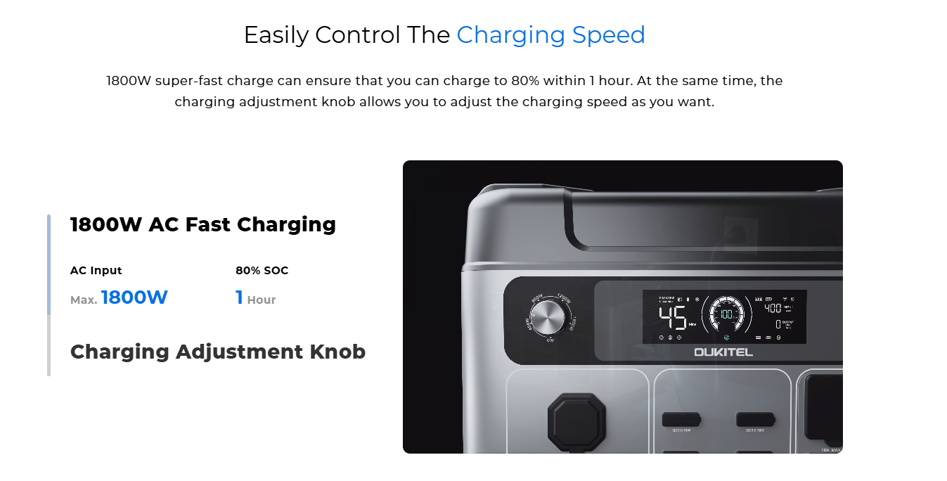1. 1800W AC Input - Recharges to 80% in just 1 hour.