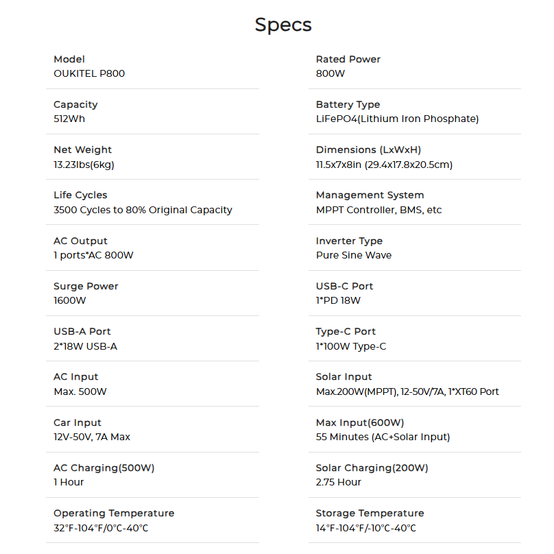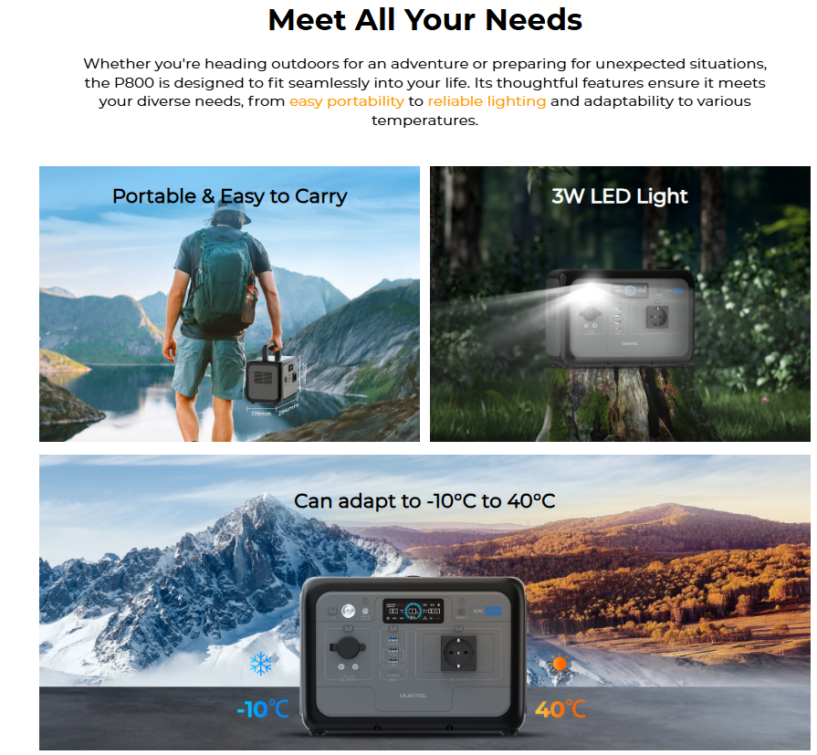 OUKITEL P800 800W/512Wh Power Station, AC/DC Fast Charge & Solar Ready for Camping/Emergency
