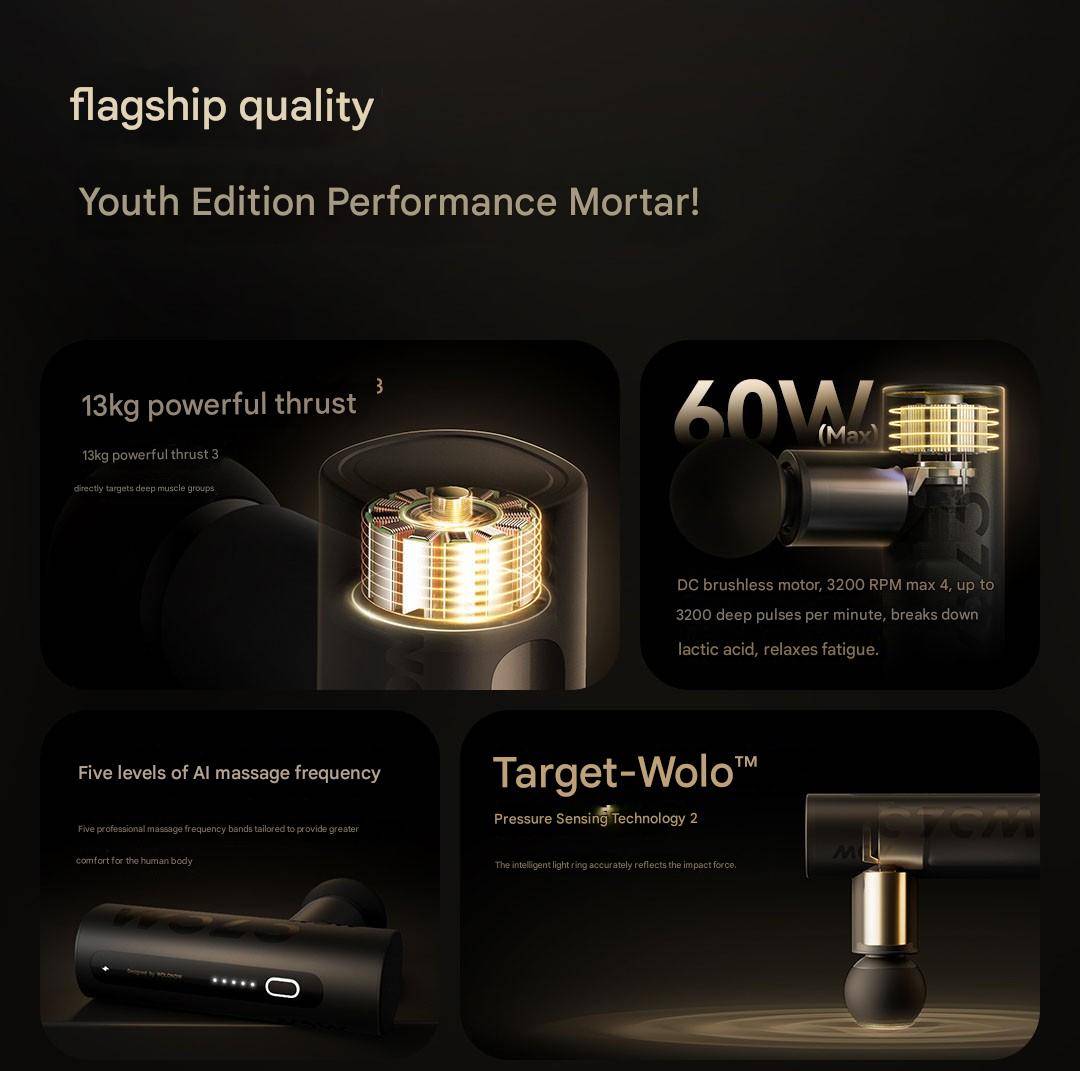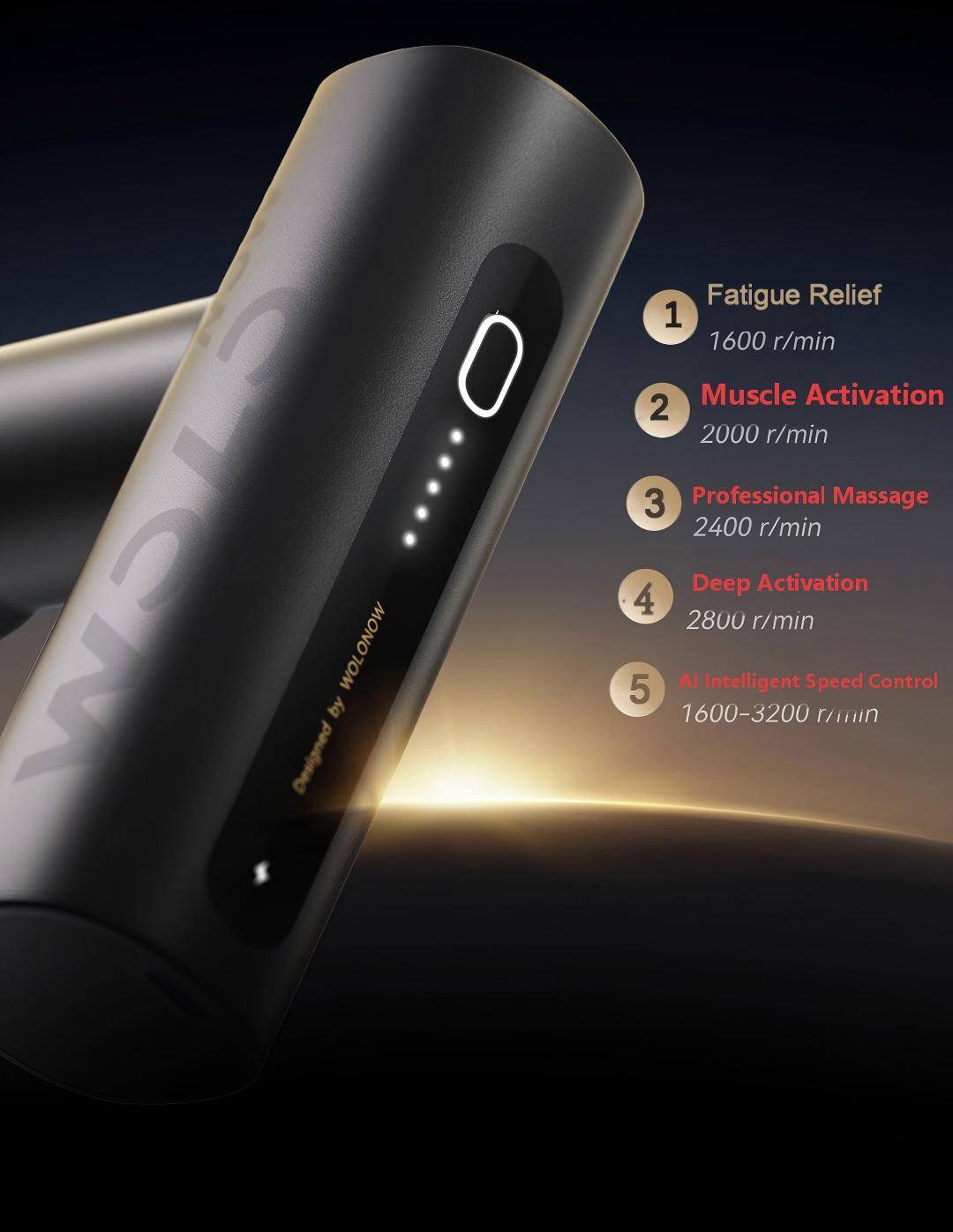 Wolonow Mini Portable Massage Gun 5-Speed AI Intelligent Adjustment Includes 4 Custom Massage Heads, Silent Operation High-Power Brushless Motor