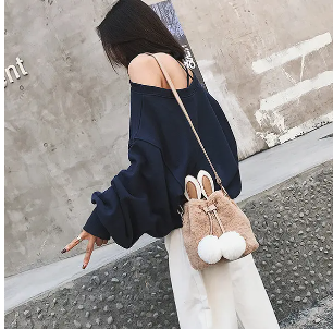 Women Cute Rabbit Fluffy Bucket Bag String Crossbody Bag