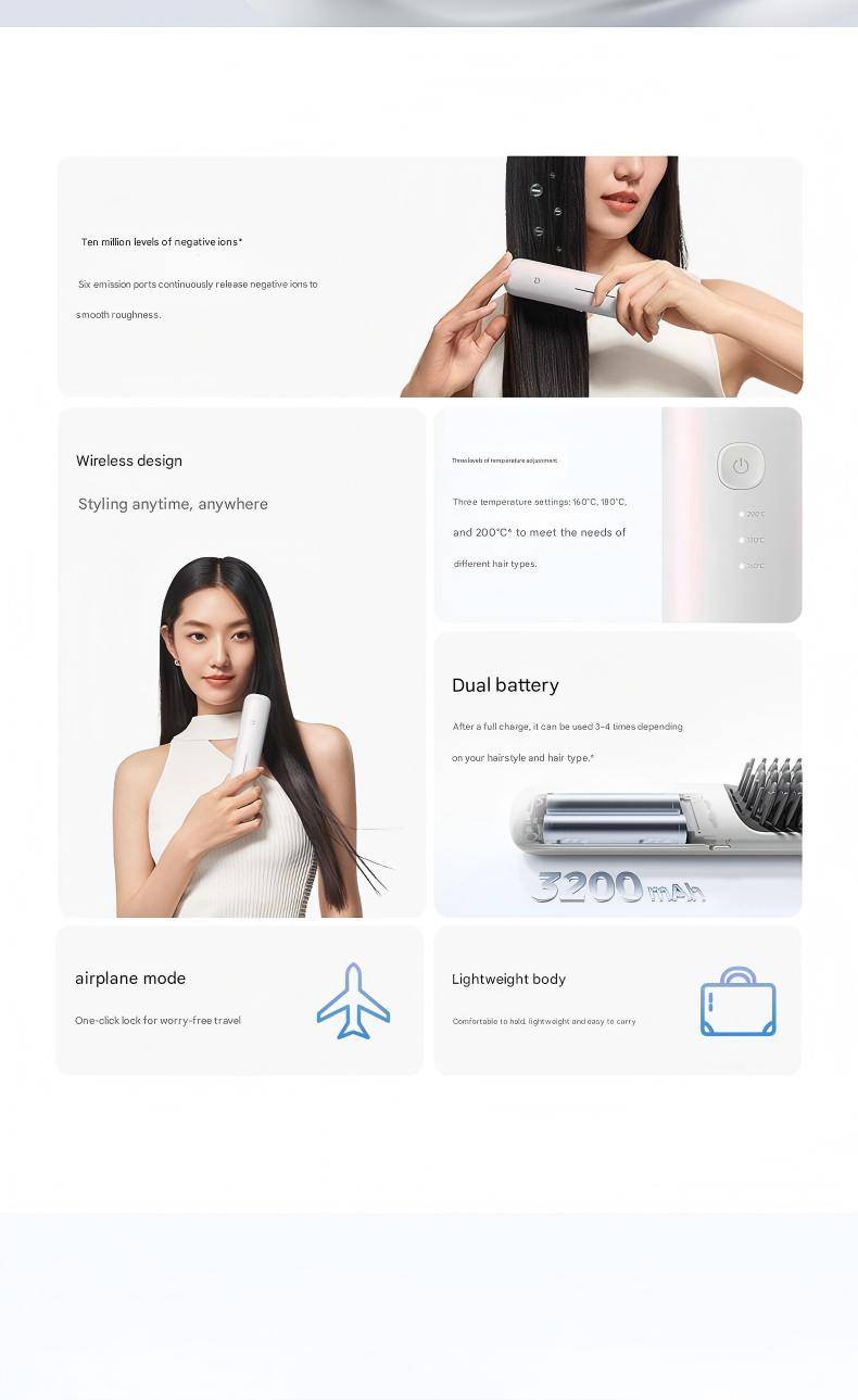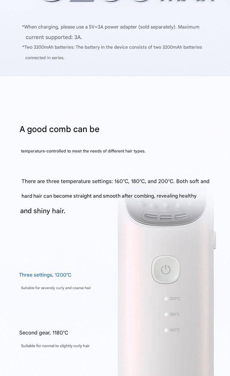 Xiaomi Mijia Cordless Hair Straightening Comb Home-Use Negative Ion Hair Care Comb & Anti-Scald Curling Tool